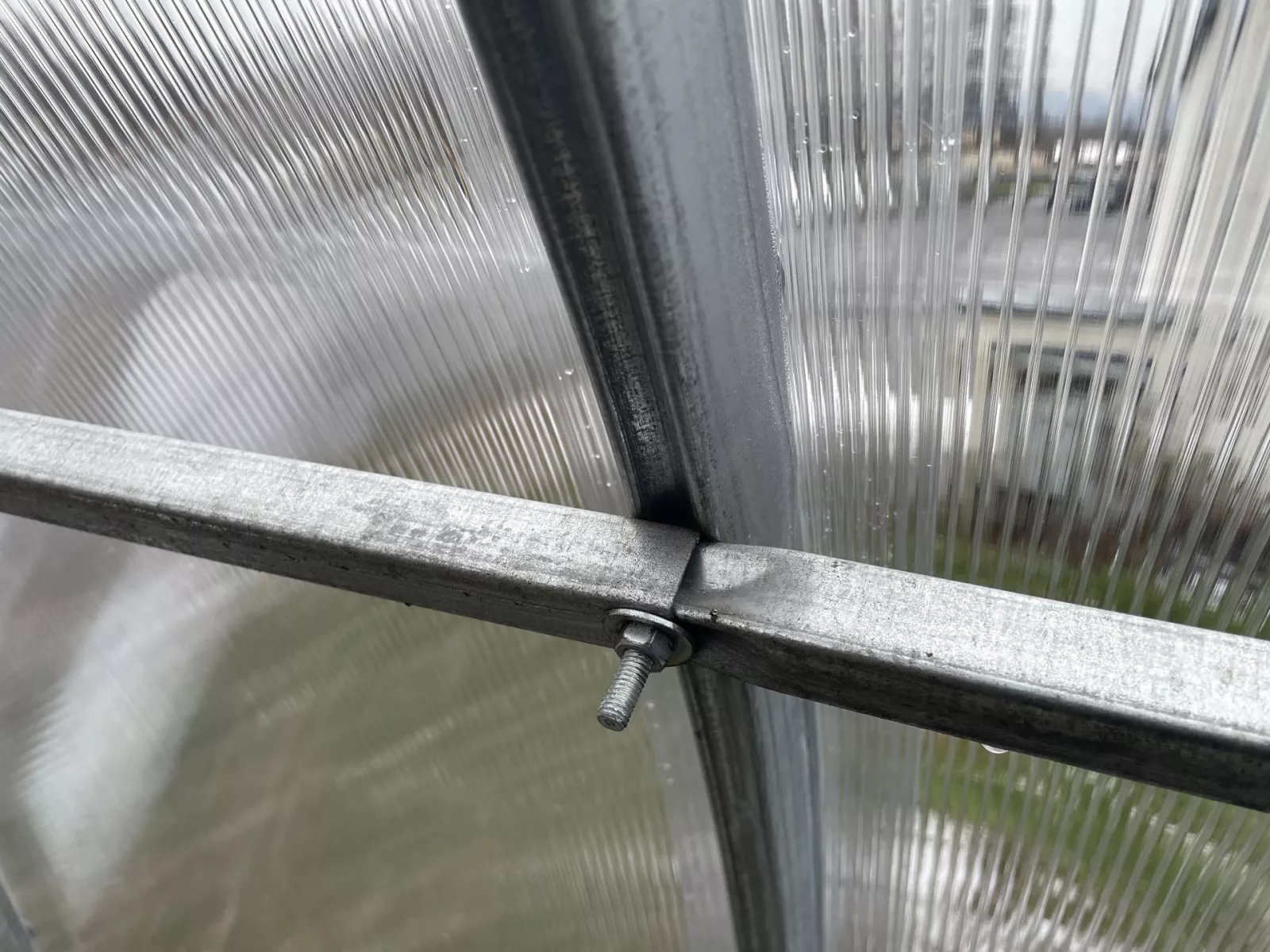 Obsahom dodávky je kompletný skleník = nosná konštrukcia (vrátane dverí a okien), všetky potrebné spojovacie prvky + polykarbonátové dosky.
