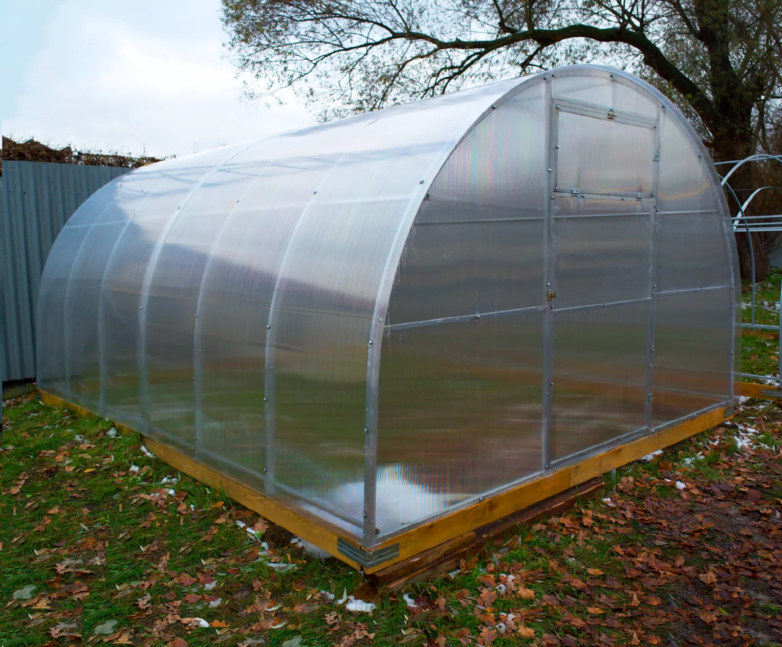 Prémiový dvojstenný komôrkový polykarbonát 4 mm so silným UV filtrom (nekrehne, nežltne), záruka 10 rokov na nerozbitnosť polykarbonátu krupobitím je u skleníkov samozrejmosťou.